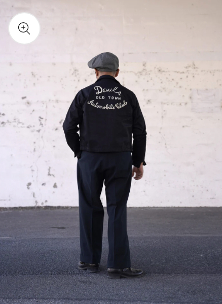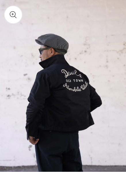 グルービンの定番、1940年代ヘラクレススタイルのコットンジャケット。今年の一重ジャケットは、当時実在してもおかしくないDEVILSのモーターサイクルクラブが刺繍されたデザインです。シルエットはタフな男前ショート、タロンジップに王道のブラックベースになります。