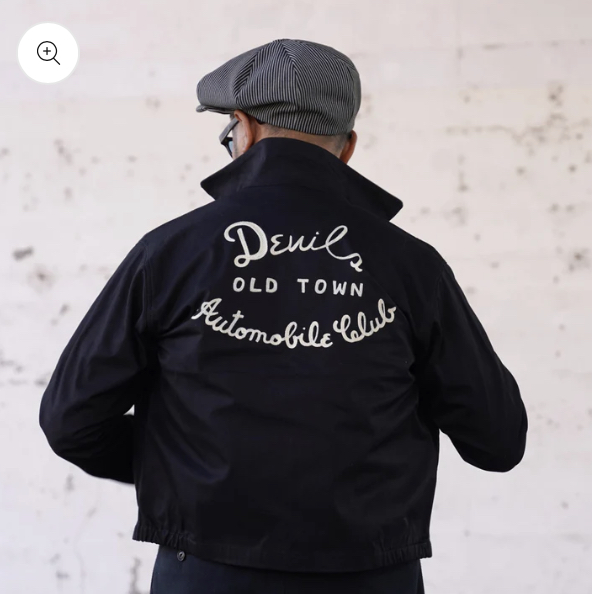 グルービンの定番、1940年代ヘラクレススタイルのコットンジャケット。今年の一重ジャケットは、当時実在してもおかしくないDEVILSのモーターサイクルクラブが刺繍されたデザインです。シルエットはタフな男前ショート、タロンジップに王道のブラックベースになります。